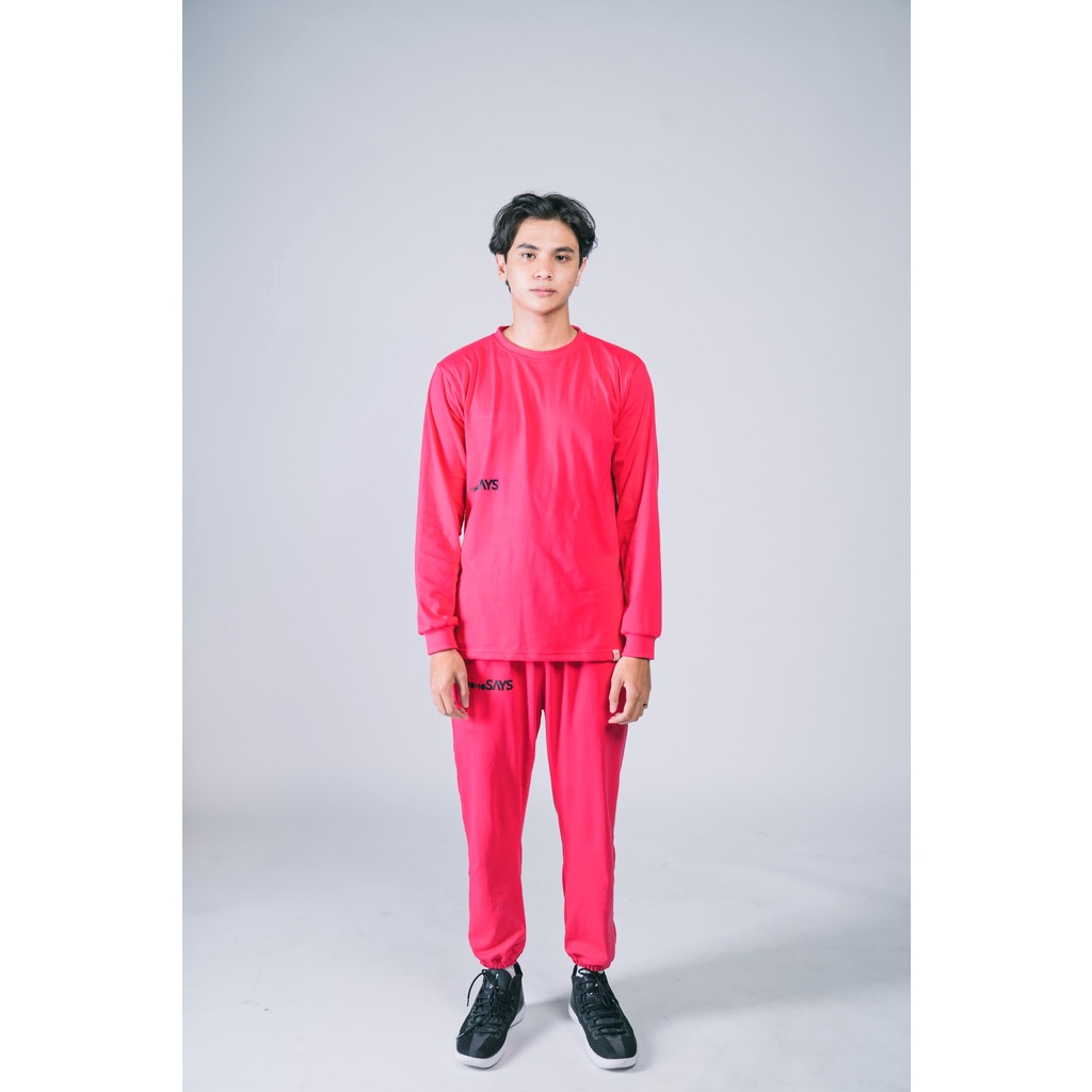 One Set Pink MOMOSAYS terdiri dari long sleeve T-Shirt dengan material 100% Cotton Combed 24s yang lembut, nyaman, dan adem. Sangat cocok digunakan di iklim tropis untuk aktifitas sehari-hari. Jogger pants dengan material 100% Cotton Twill yang nyaman.Merupakan pakaian dengan kualitas terbaik dan tidak kalah dengan produk brand lainnya. Print label terbaik dengan design keren, One Set Pink MOMOSAYS ini menjadi outfit menarik dan stylish.